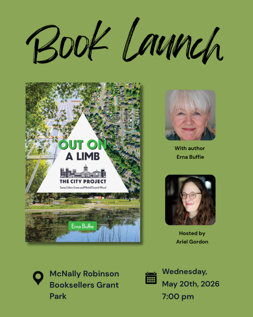 Erna Buffie, who spent over twenty years working on CBC’s The Nature Of Things, has authored the latest title in The City Project series. Out On A Limb: Saving the Urban Tree Canopy, launches on May 20th at McNally Robinson Booksellers in Winnipeg. Despite the launch being over a month away, Out On A Limb has already hit the Manitoba Bestsellers list!